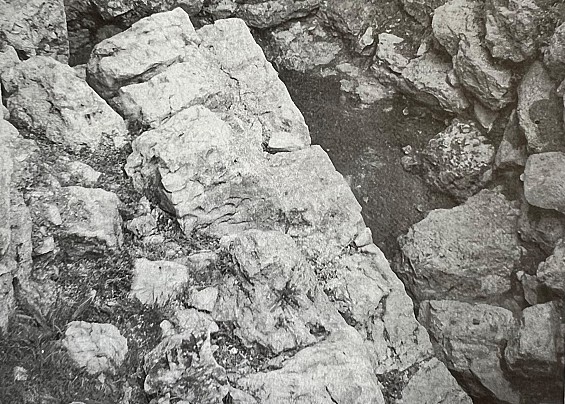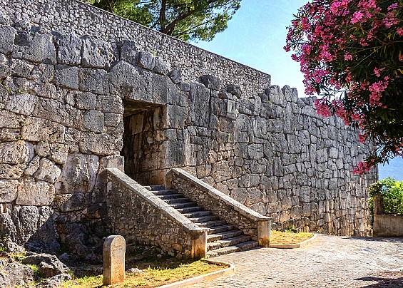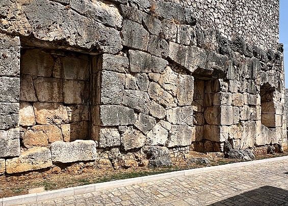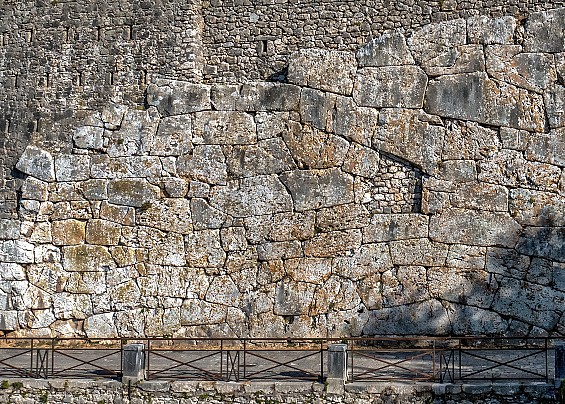 Poco oltre si conserva un tratto sporgente della muraglia, attribuibile a una fase primitiva della fortificazione, forse parte di un accesso arcaico.